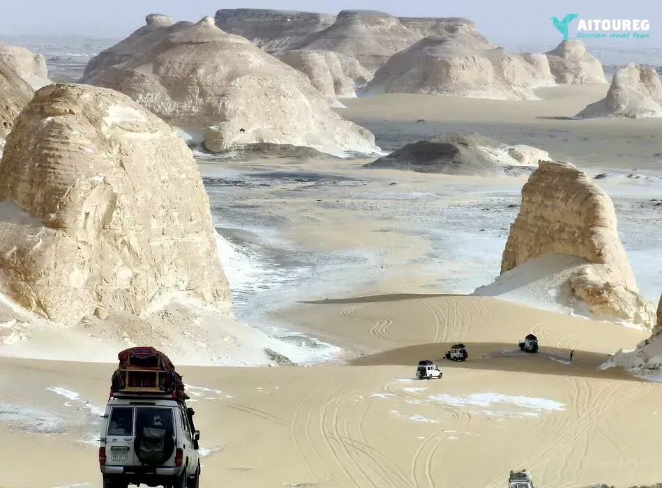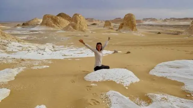 Old White Desert Marvel at the unique limestone formations shaped like mushrooms, tents, and flowers. Enjoy panoramic desert views
