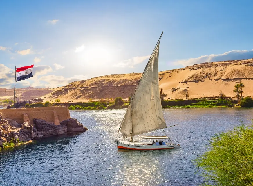 Arrive in Aswan and check in to the Nile Cruise. Enjoy lunch onboard, an optional visit to the High Dam and Philae Temple, followed by a sunset felucca ride to the Nubian Village. Evening includes dinner, entertainment, and overnight onboard.